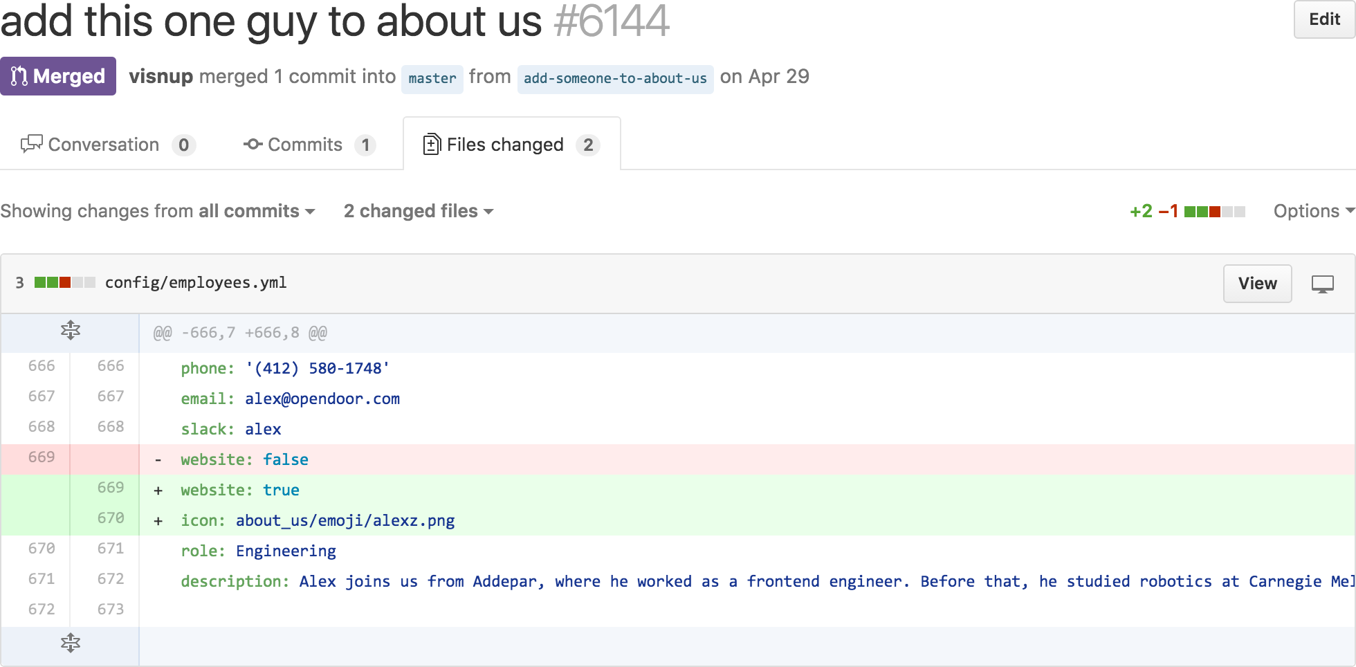 At this point I had been at Opendoor for eight months, so I had almost forgotten that I wasn't on the website. But apparently Visnu hadn't forgotten, and he quietly added me that week: