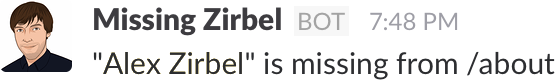 After about a week, I started feeling guilty. The "about" page looked broken because of the blank space where I was supposed to be; one of my co-workers even filed a bug report about it.