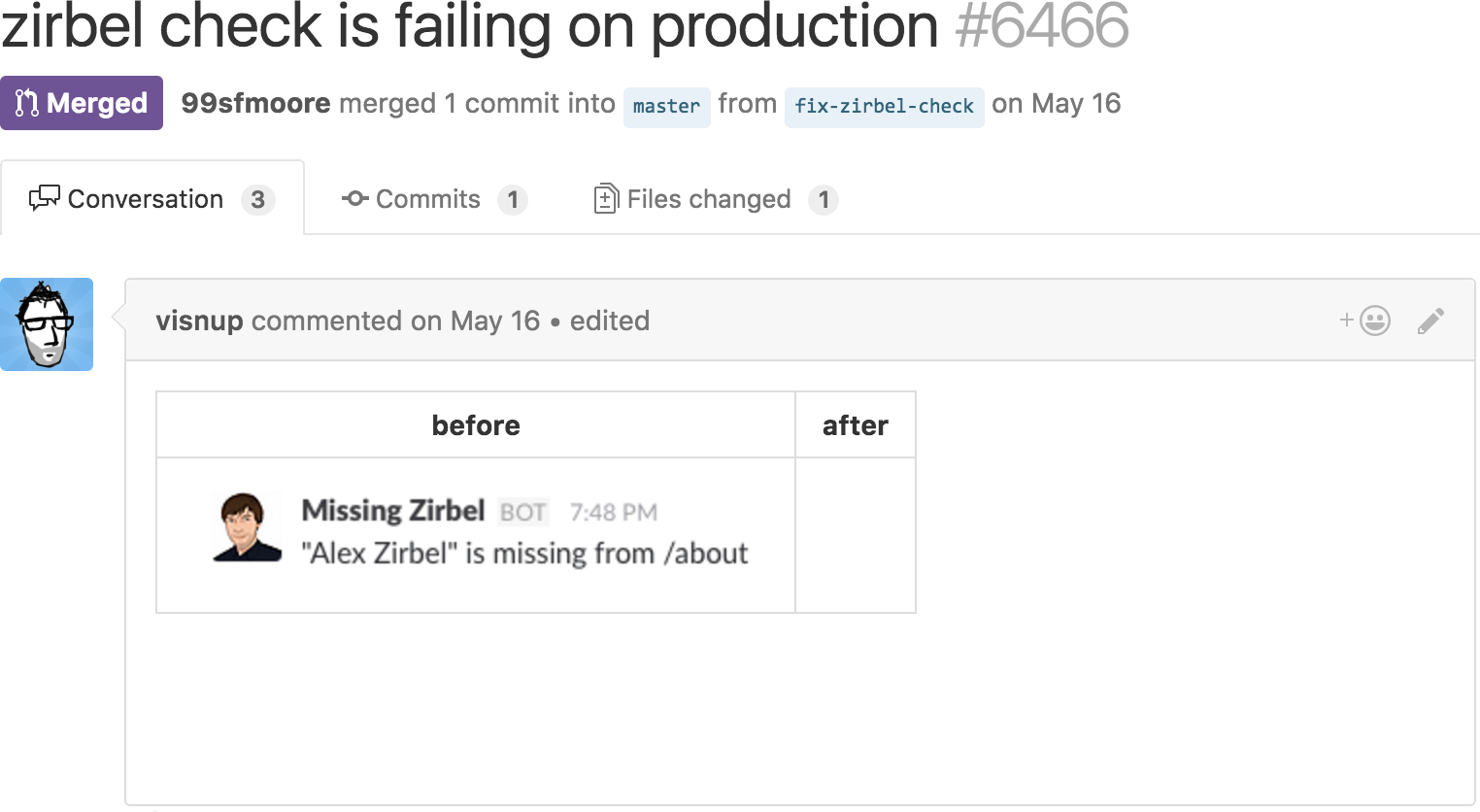 Visnu even wrote a test to make sure I couldn't sneak off the website again. He's thorough like that.